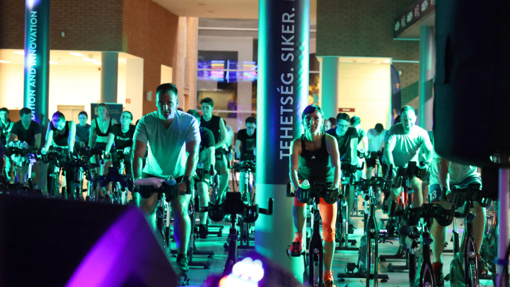 Öt egymást követő blokkban hallgatók, munkatársak és oktatók tekertek együtt, több mint 350 résztvevővel, miközben a profi Spinning oktatók irányításával fergeteges hangulat, dinamikus zene és látványos fények tették még különlegesebbé az élményt. A rendezvény nemcsak a sportteljesítményről szólt, hanem a közösségről, a zenéről és az egészséges életmód öröméről is.