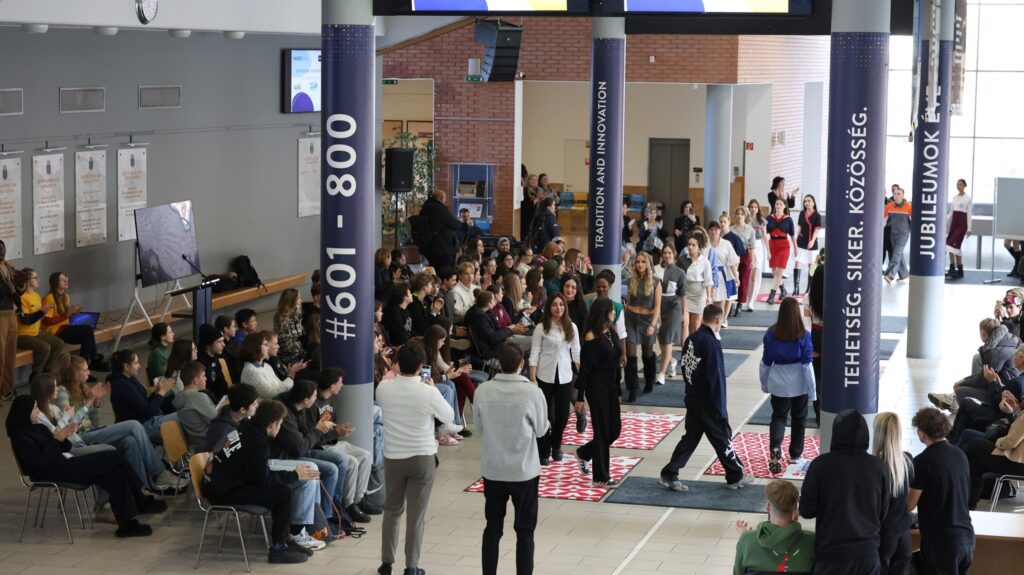 A nap egyik legszínesebb pontja a 12:30-kor kezdődő Újrahasznosítási Divatbemutató volt, ahol kreatív, újrahasznosított anyagokból készült ruhakreációk vonultak végig a kifutón, inspirálva a diákokat az anyagok újragondolására.